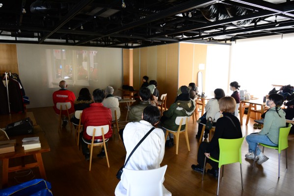 古着屋、服の修理体験、被災した能登の方からいただいた着物で作るあずま袋作りワークショップと同時に、「リペアカフェ」を上映しました。1日に3回上映したので、さまざまな方が観てくださいました。