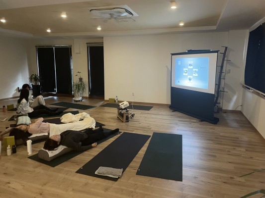 ヨガマットの上でで寛ぎながら観る。
