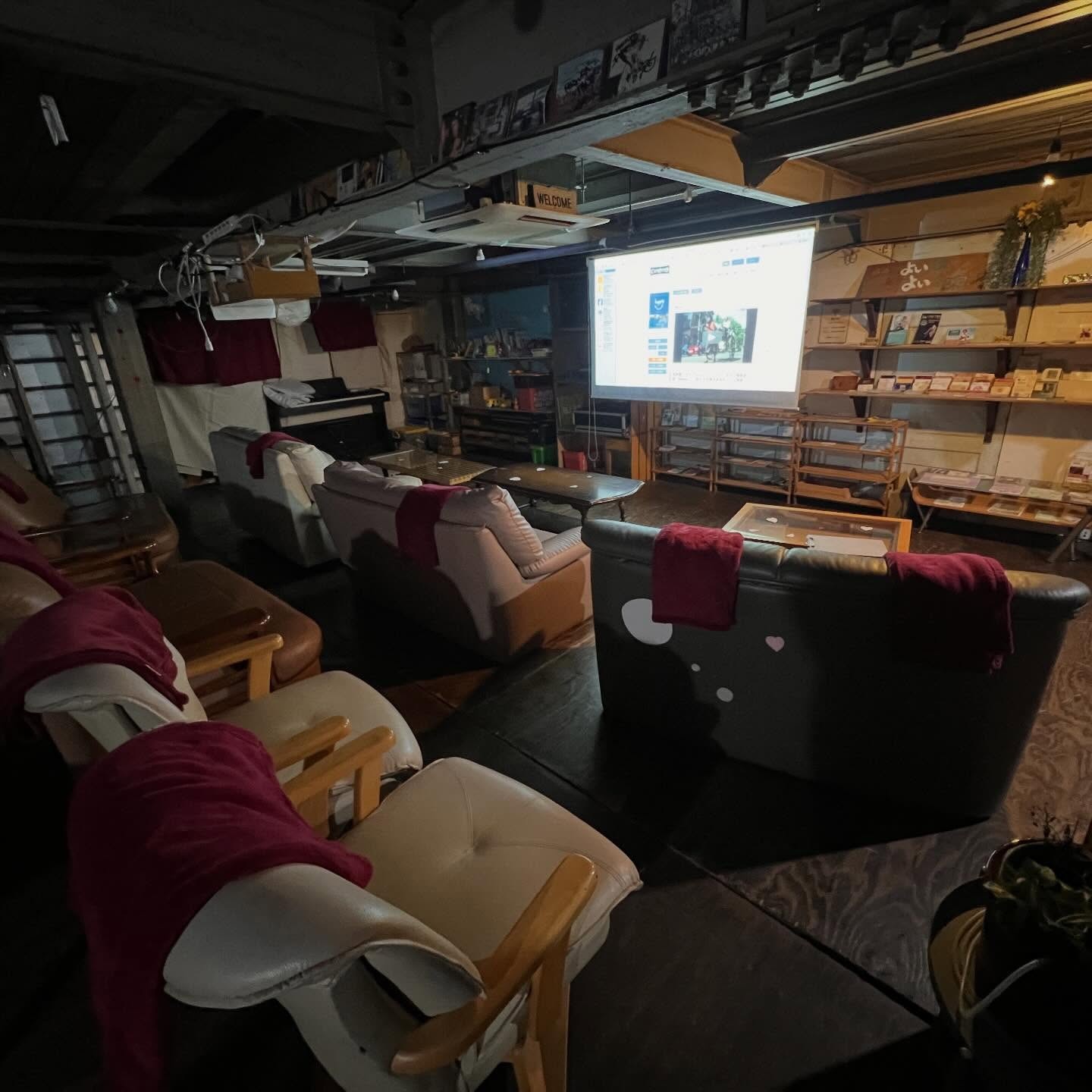上映会場は、#路地裏ガレージマーケット(さいたま市中央区鈴谷)の2階にあります。ゆったりとしたソファに座って美味しいコーヒーを飲みながら鑑賞。